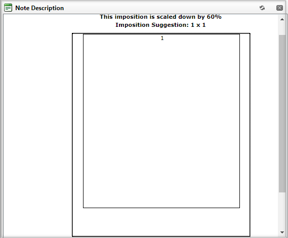 ![]() | Clicking the Print Layout + (plus) symbol will display the proposed layout. The values in this field cannot be manually adjusted. The system will determine the most suitable layout based upon the selections made in each of the settings of this dialog box. Note: If you see values in the Print layout dimensions of zero for Portrait and Landscape, the system is advising that the the size of the item you are producing is bigger than the sheet you are printing on. This may be due to the press restrictions that you have set, such as the gutter size, spoilage etc. These can be disabled by un-ticking the field above Print Layout referred to as Press Restrictions. Alternatively, you could make a different selection of stock. |